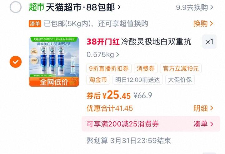 到手25.45。折8.48/支