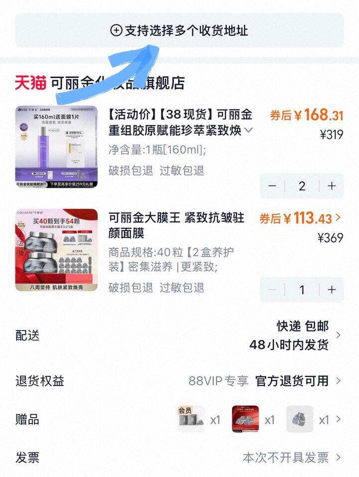 🔔可以分地址,直接把赠品都卡到大魔王,然后把凑单退了