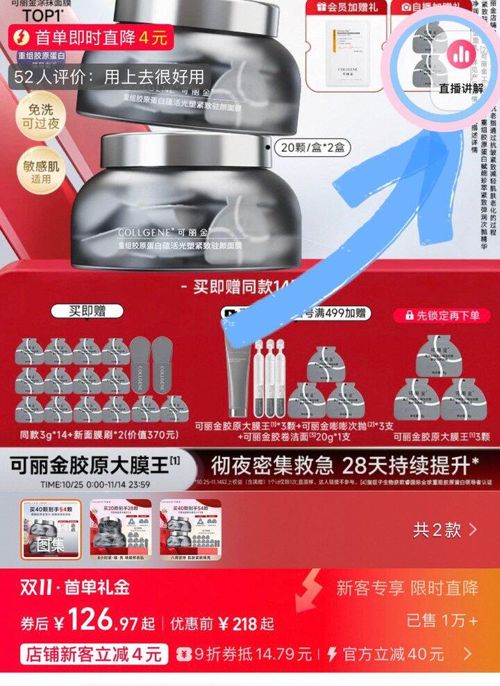 【到手54颗+1💰加购2颗+直播间加购贈1颗+会员1颗+面霜1.5g+眼霜1.5g+嘭嘭次抛1支】