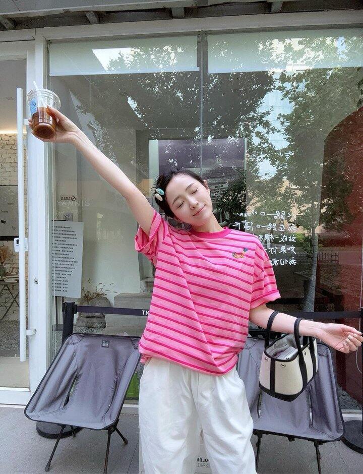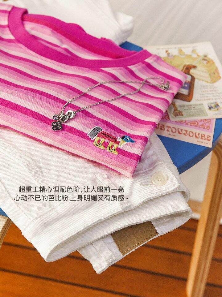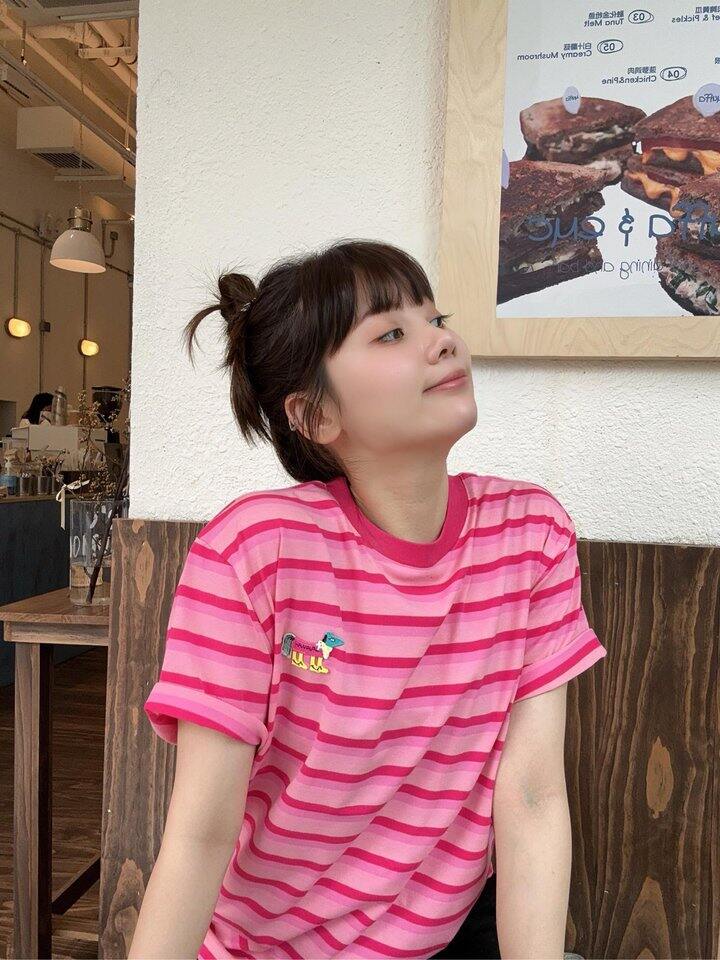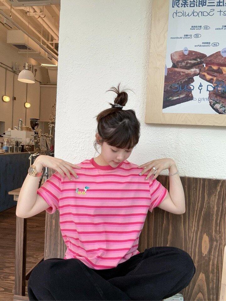 巨显白芭比粉条纹短袖!💰59