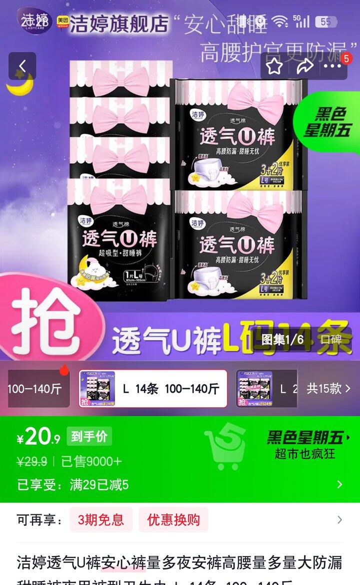 ❷双𝐔棉柔日夜组合𝟔𝟓片【𝟏𝟑.𝟗】