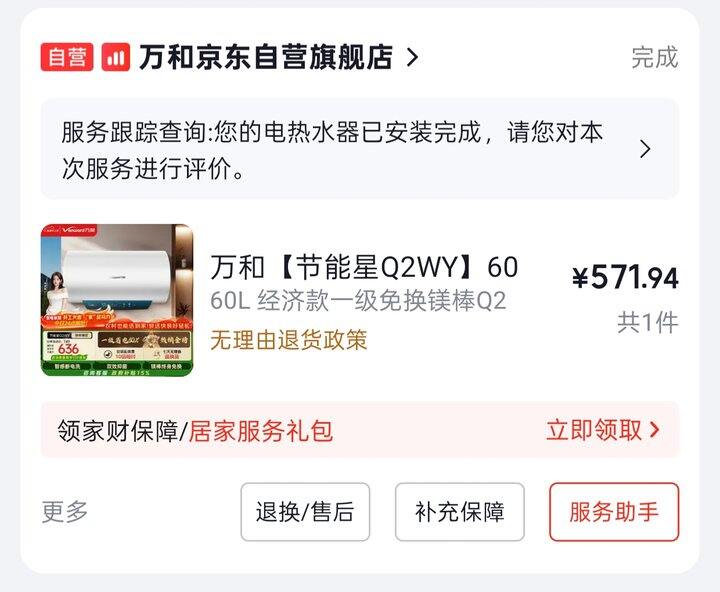 安装热水器的师傅说一般旧热水器能卖20~30元,那我为啥要选择以旧换新呢?因为热水器有安装刺客的存在!热水器免费安装指的是只帮你把热水器挂上去是免费的,拆机要30元,其他额外的零部件、钻孔啥的都要收费,有人热水器安装费快赶上热水器的钱了。但是以旧换新是帮你免费拆机的,所以相当于我这个热水器是卖了40+。为了避免安装刺客,我做攻略自己准备了辅材,问客服说不买他们的辅材要收费25元,我打算避免一切费用,就出这25元。后来证明并不是所有师傅都是安装刺客,我遇到了好师傅,一分钱都没收,还帮我钻了孔,谢谢安装师傅!