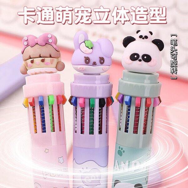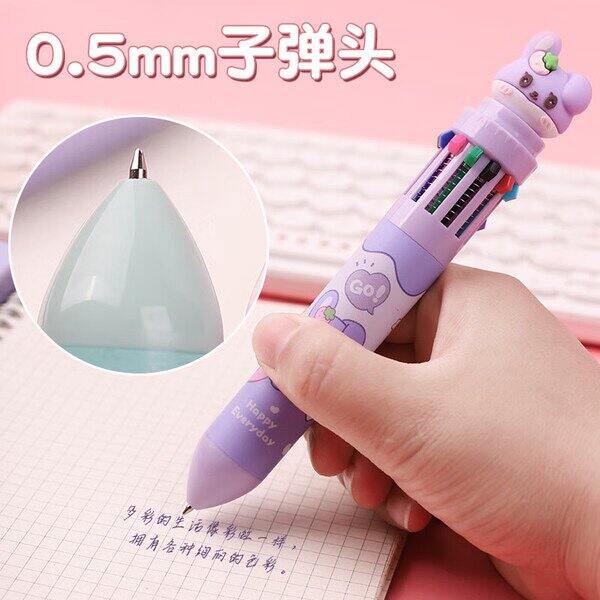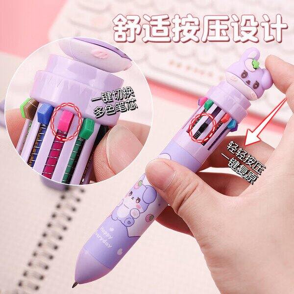 自营离草 卡通彩色笔按压十色圆珠笔1支装