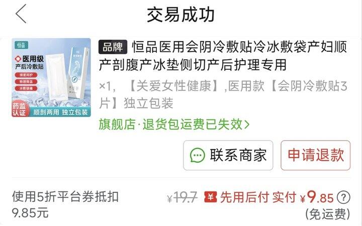 7.会阴冷敷贴(顺产用,医院让2-3个),不要买下面这家,那个护士长帮我打开一个又一个,说每个都不冰,生后马上就需要,外卖都来不及,痛啊,集美们一定要避雷这家,这个很重要,一定要买大牌子[怒]