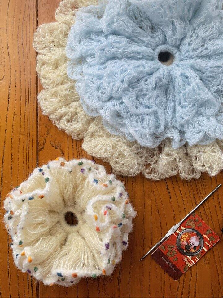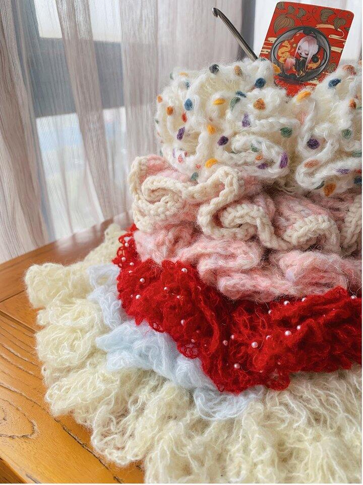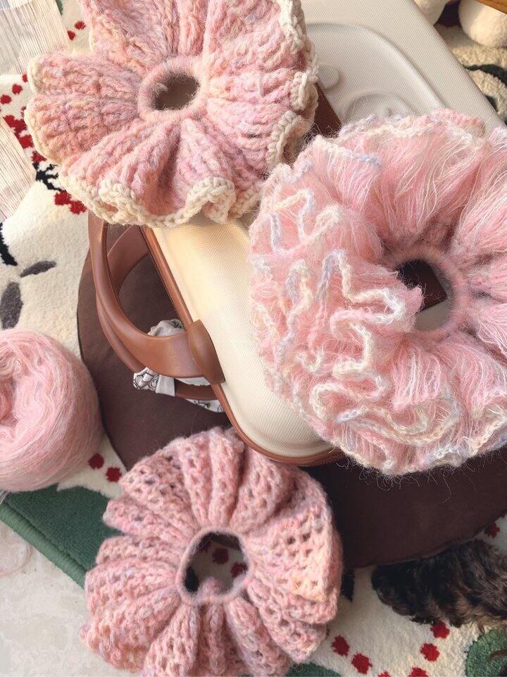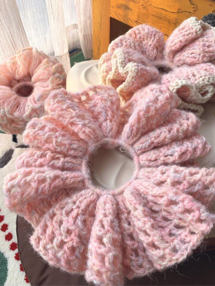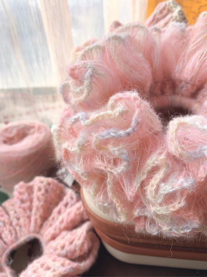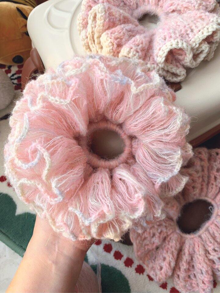 压力大的姐妹都来钩针织毛线,心情一整个愉悦住了~ 太爱我的巨无霸发圈了~