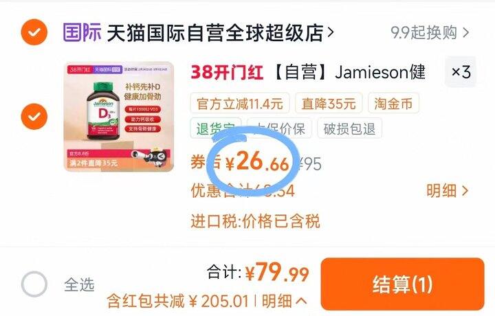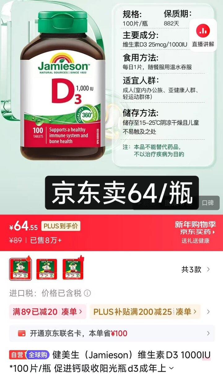 Vd来了,山姆同款健美生维D3钙片26/瓶