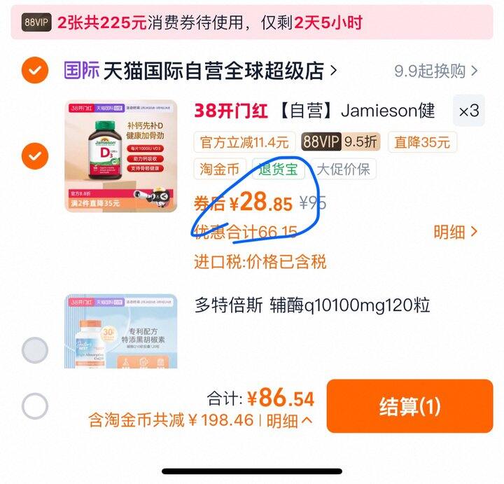 健美生维生素D3,28.85/瓶