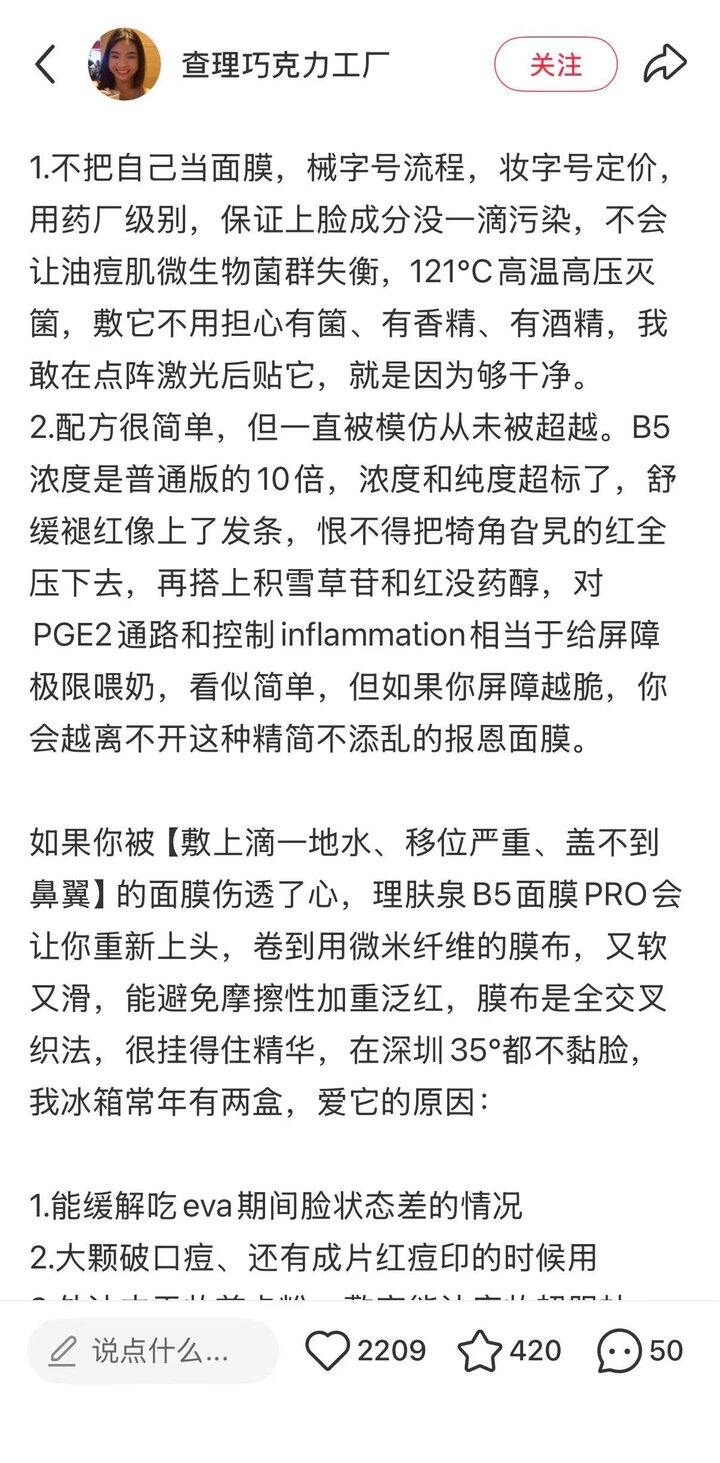 理肤泉 b5 pro 面膜好价,38 节李佳琦直播间用红包下来还要5.8 一片,不如这个作业便宜
