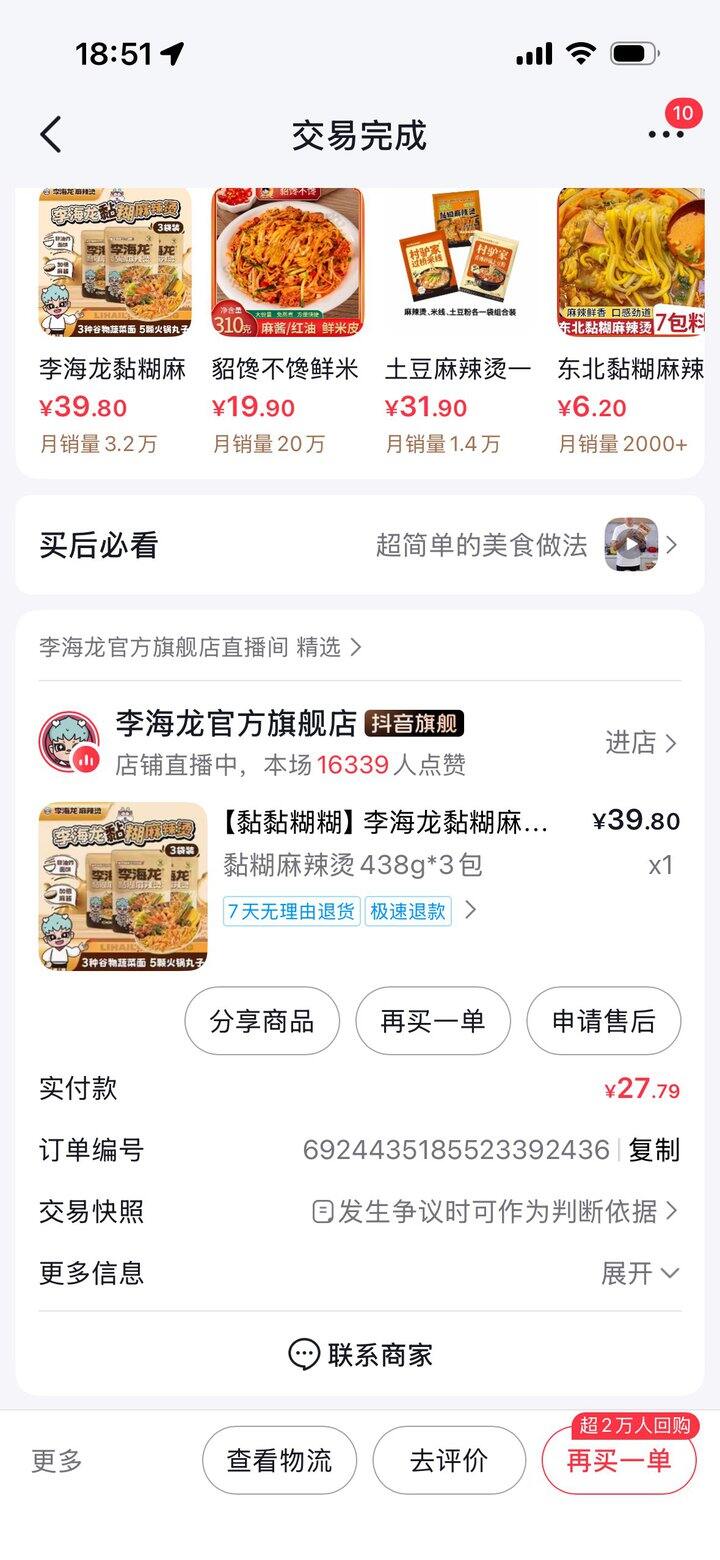 李海龙真好吃!就是不够我吃,煮的时候加了1块方便面饼,辣椒对我来说有点辣了,其他完美!建议买了以后自己放喜欢的菜和面~不过如果原价13一包太贵了,能顶一碗刘文祥了(我这里的刘文祥也绝绝子,听说很多地方的都不好吃[呵呵]),我刷到了30-12券,后来刷到过14券,多刷刷,还有5块多返利,算下来7块多一包,就还可以