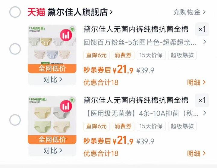 4/条 黛尔佳人纯棉内裤