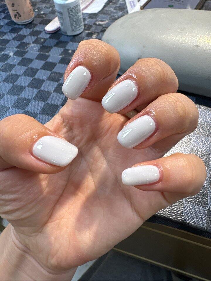 我一年到头做的少,没那么懂,觉得她家很不错,因为看反光点,指甲做的很平滑,大家觉得咋样?我同事非说做的离甲床太远,我还觉得已经顶边了