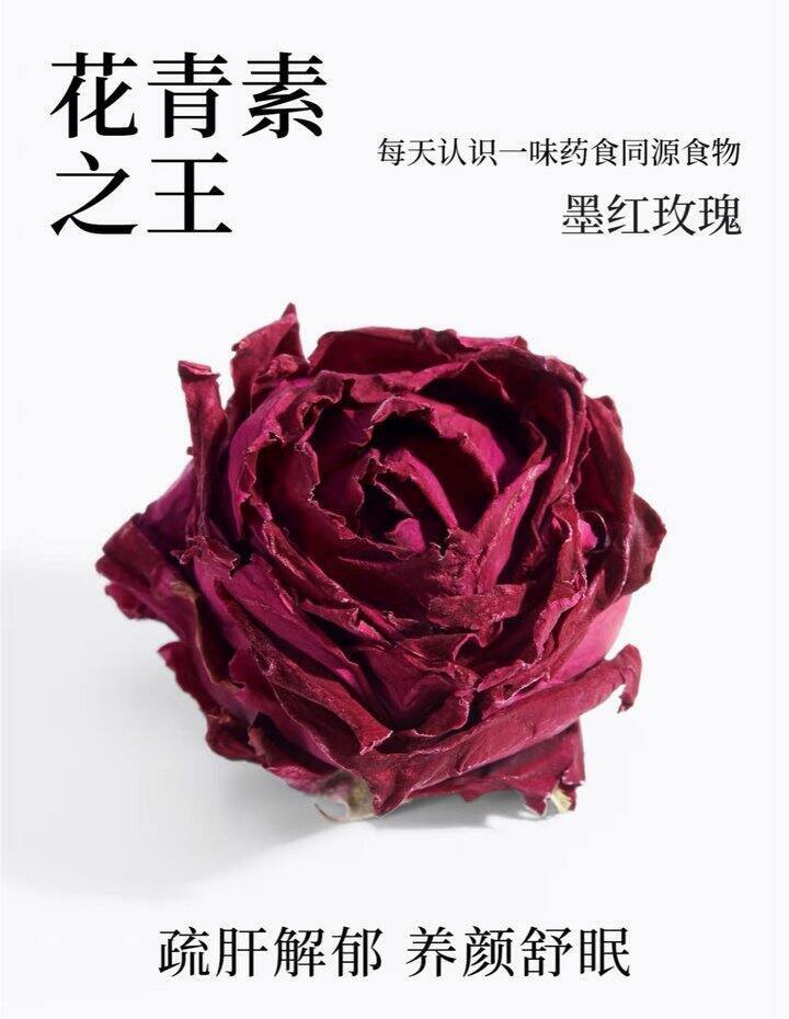 中医认为春天是养肝、护肝的好时节肝气以升发为宜墨红玫瑰花是益气解郁的首选常饮玫瑰花茶,可以活血美肌暖胃养肝、预防便秘、降火气、收敛、调经等尤其适合平时爱生闷气而导致面色黯淡月经不调、胸部胀痛的女性饮用🔻墨红玫瑰、黑枸杞、蓝莓并称“花青素三巨头墨红玫瑰中含的花青素最高,抗老抗衰最好