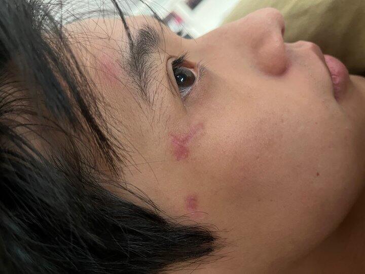 躺床上看剧,他偶尔回头跟我说话,不得感叹真帅,死男人,他右脸磕破了缝了两针,现在左脸好看点了