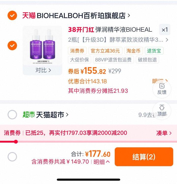 到手155.8。拍2瓶装的,也就是77.9/瓶