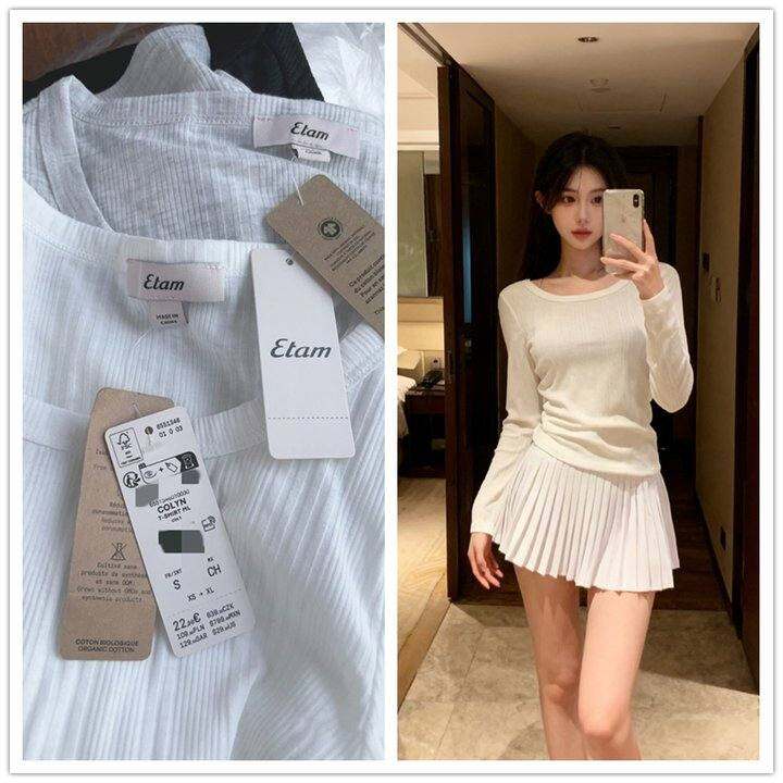 22.99欧元 法国艾格Etam软糯螺纹针织T恤 简约老钱风打底衫