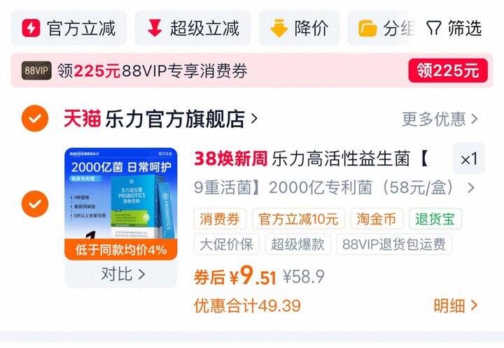 乐力小蓝条益生菌20条丨 9.5