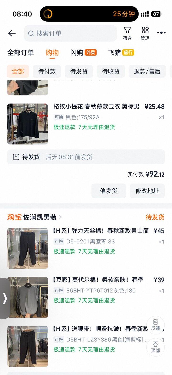 过了个年,家属厚裤子落老家了,补下货。