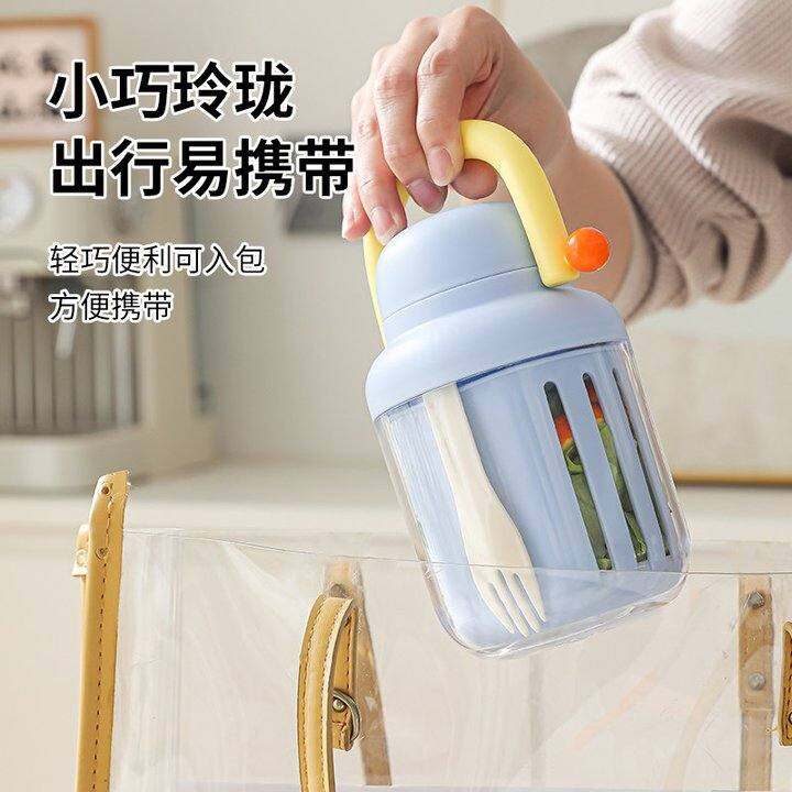 川岛屋食品级外带水果杯带叉子上班族外出便携式双层可沥水沙拉杯