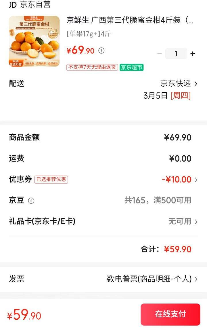 59.9💰京鲜生 广西第三代脆蜜金柑