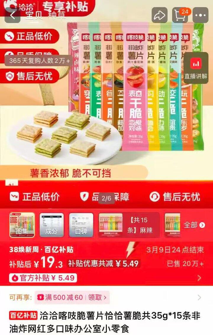洽洽 喀吱脆薯片15条💰19.3