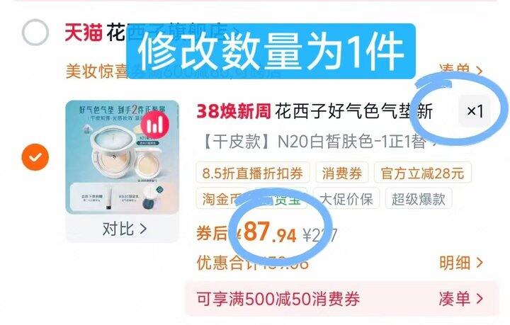 再去购物车修改数量为“1”