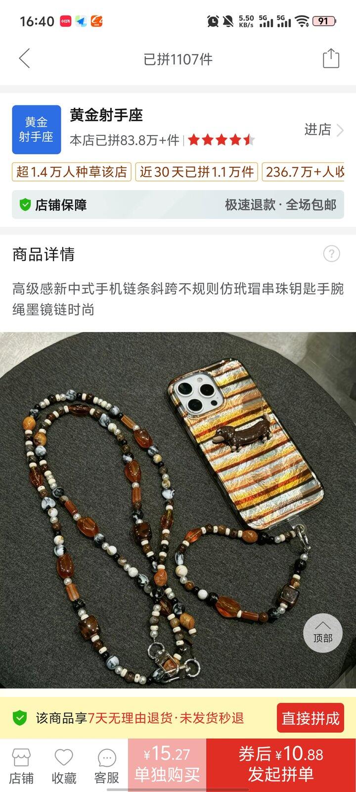 因为夏天喜欢穿裙子,所以很喜欢买手机挂绳,去年买的两个漂亮珠珠的被我女儿拿去找不到了,非说是她的项链。这个看某书推荐的,不贵,买来看看。