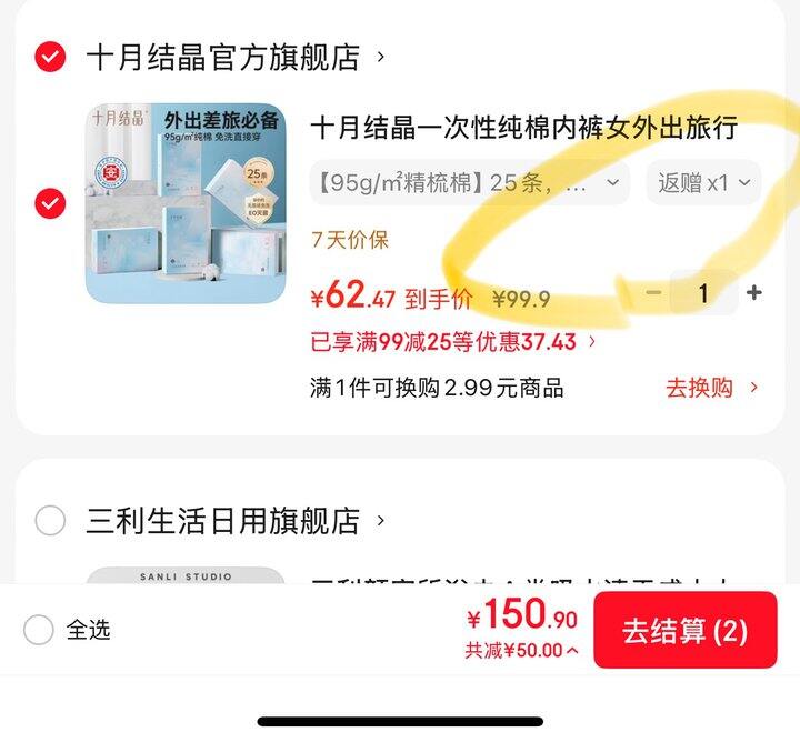 十月结晶一次性内裤丨1.46/条