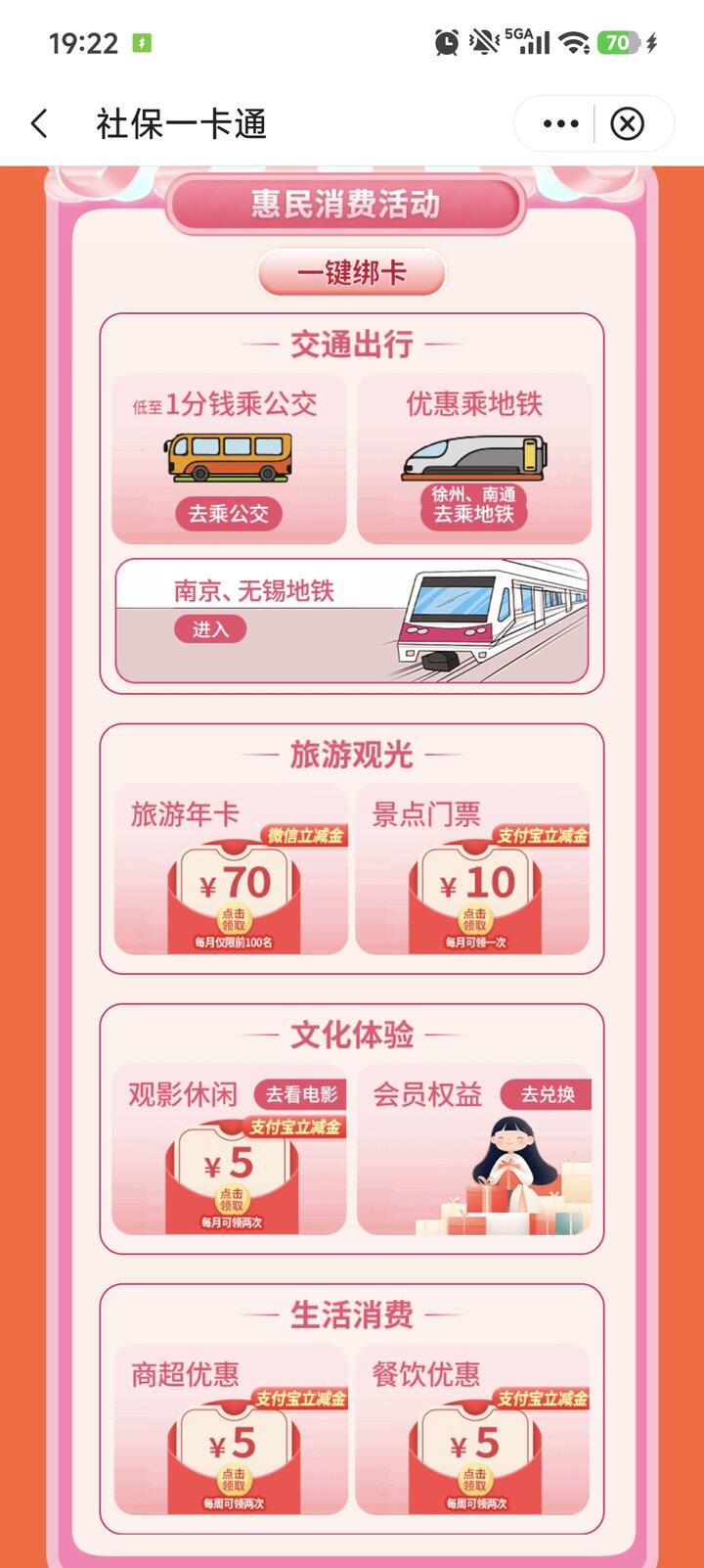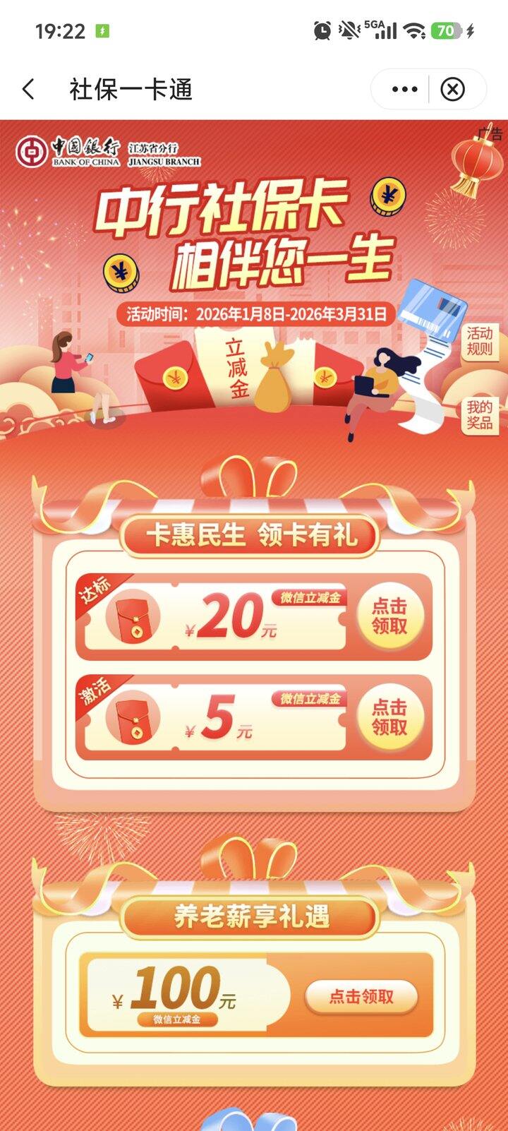 在搜江苏水韵文旅年卡活动,发现了中行社保卡活动页面入口这么深。