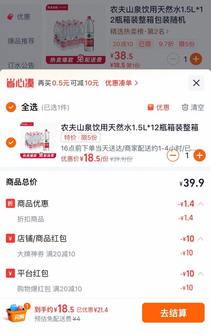 怡宝官方旗舰店/农夫山泉/洞庭山等