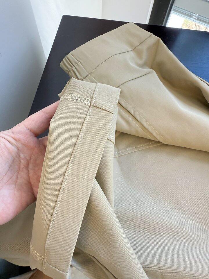 完全不贴腿, 九分长度绝绝子,刚好露出一点点脚踝,显腿长不压个子。