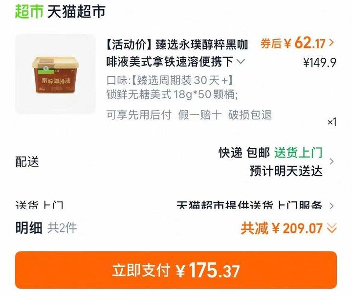 永璞咖啡液50枚💰62链接直弹3.79礼金和15元商品券