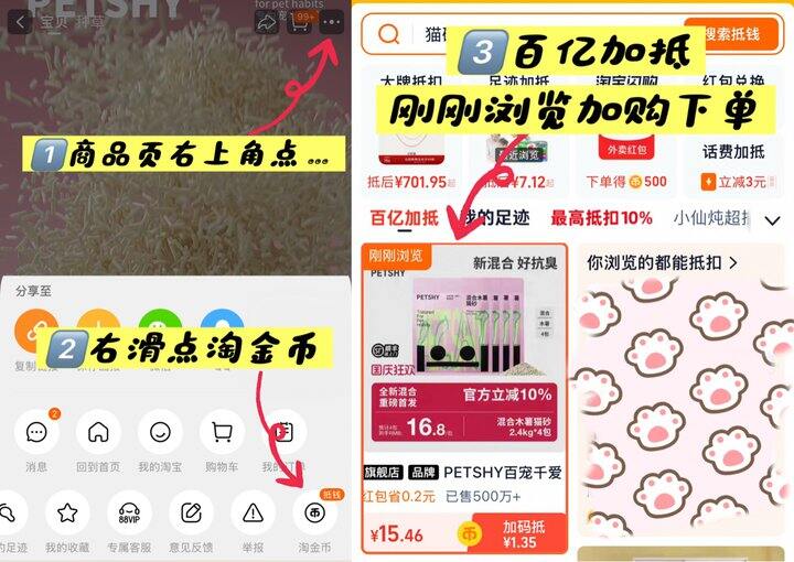 点商品右上角...进淘金帀页面加购
