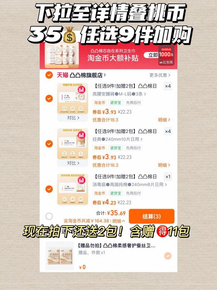 凸凸棉卫生巾!💰3+