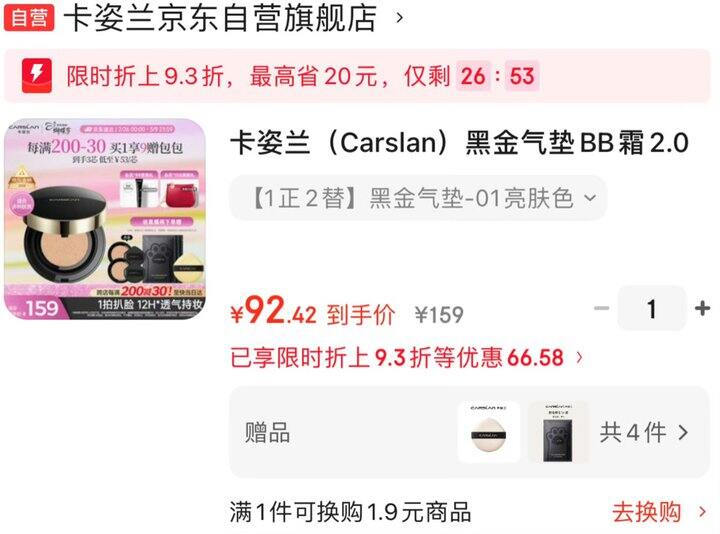 卡姿兰Plus到手92.42,【1正2替】相当于30.8/个❗