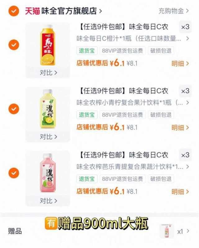 味全每日C果蔬汁,4.5/瓶