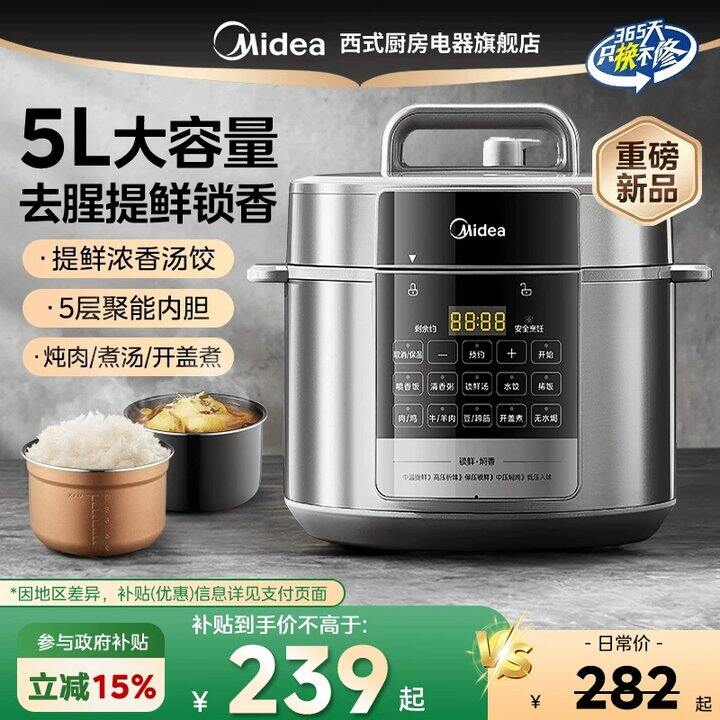 美的电压力锅家用5L大容量智能双胆高压锅多功能全自动饭煲新款