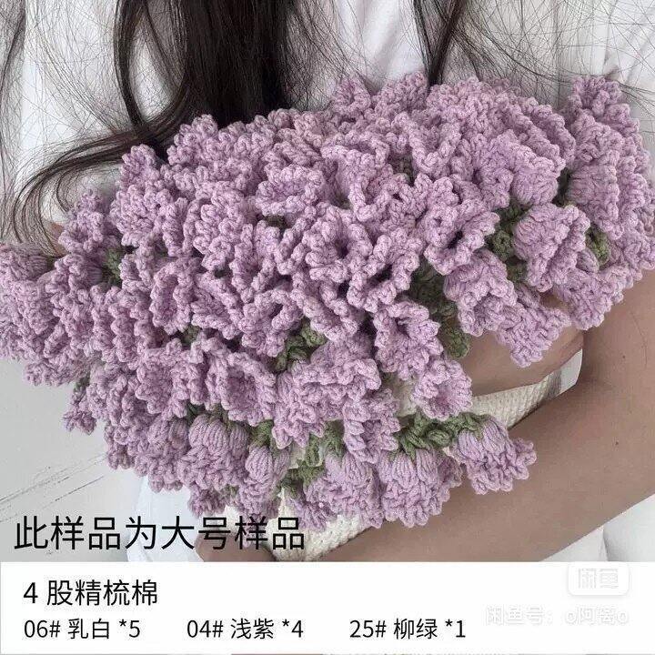 可以送一个网红花束毯线材组合,小号,紫色铃兰花,4股精梳棉,颜色是06乳白*3,04浅紫*4,25柳绿*1