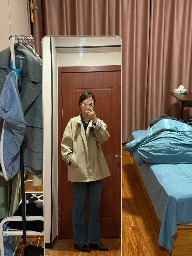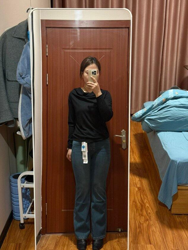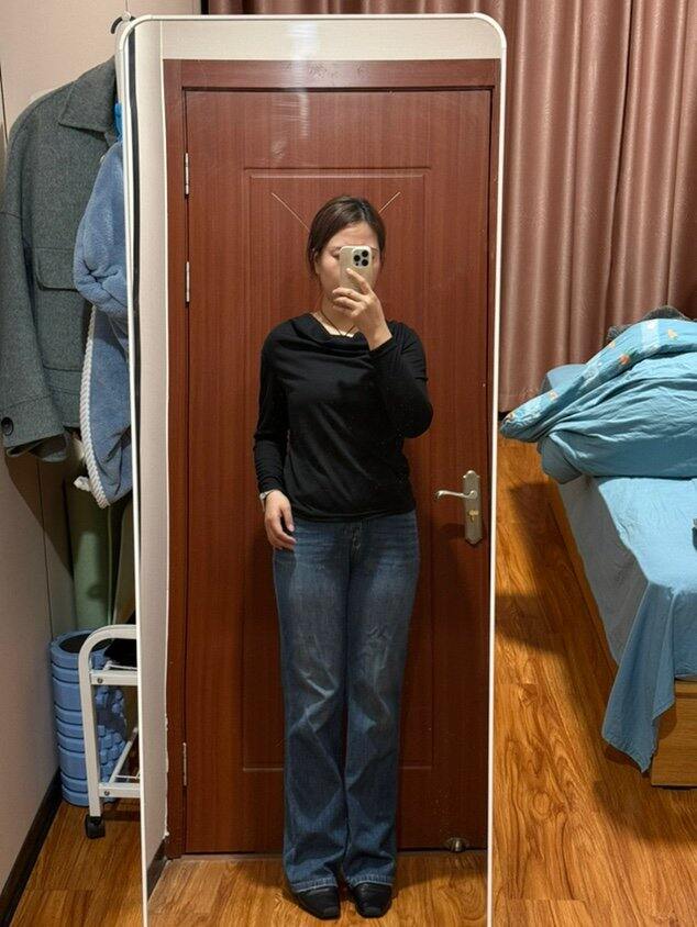荡领上衣+微喇牛仔裤,emmm好像裤子还是不太适合梨形,考虑想退