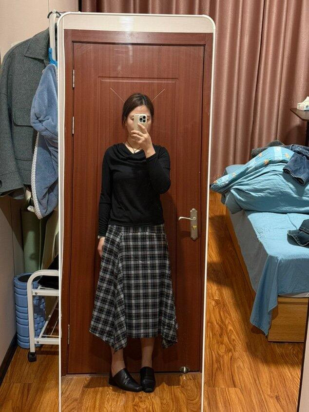对照,换成了自己的裙子,买上衣最开始想的搭配,自我感觉梨形还是适合穿裙子,不是短裙就行。