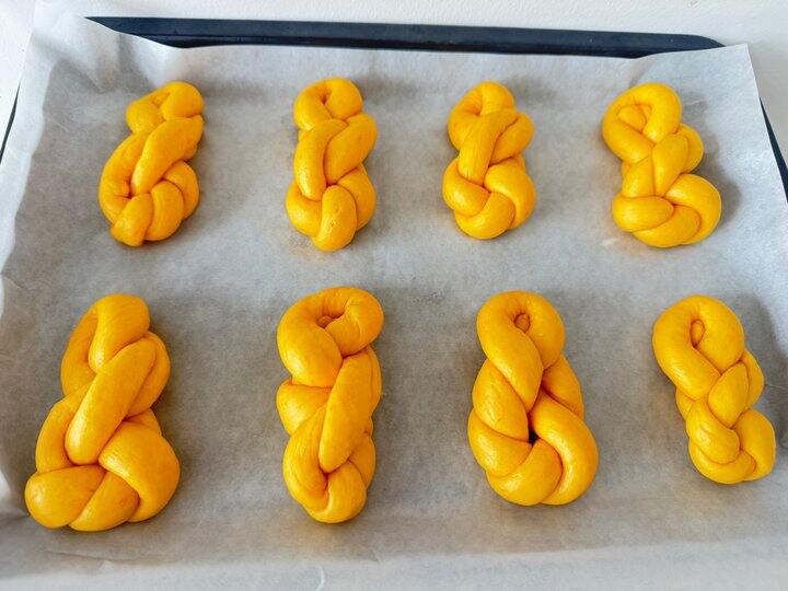 做成麻花,醒发至 1.5 倍大,大概 15~20 分钟。看温度环境。