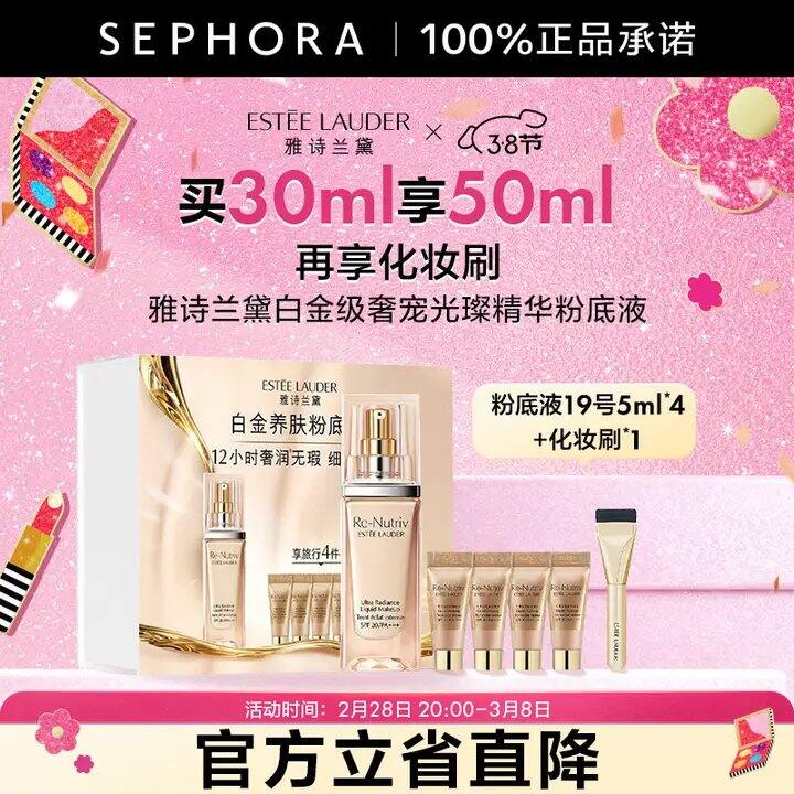1、雅诗兰黛白金粉底液30ml+5ml*4+粉刷:https://u.jd.com///Nar5DjP