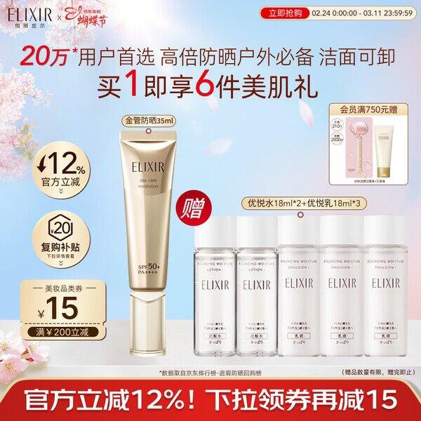 怡丽丝尔金管防晒35ml+送54ml乳液+36ml水学生会员特价200 https://u.jd.com/Nrr5mwb