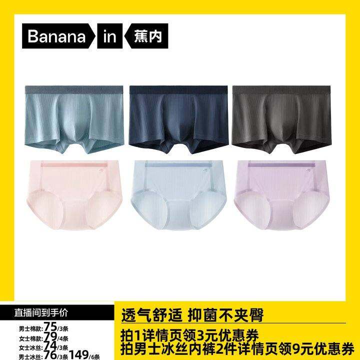 【达人专享】蕉内银皮3系男女士冰丝棉感无痕隐形透气内裤多条装