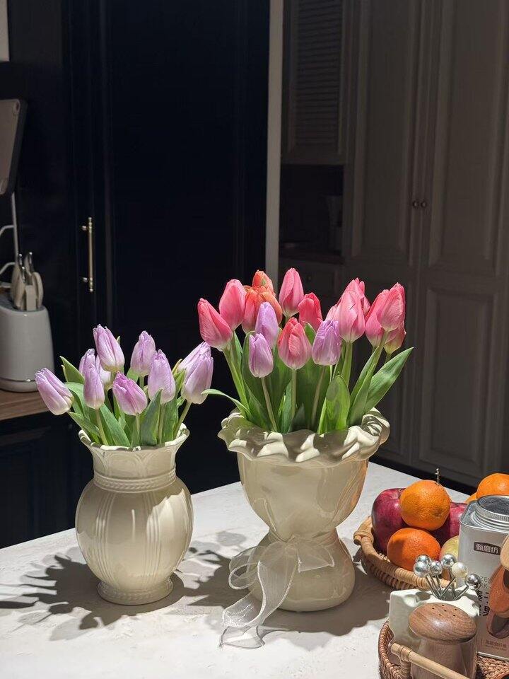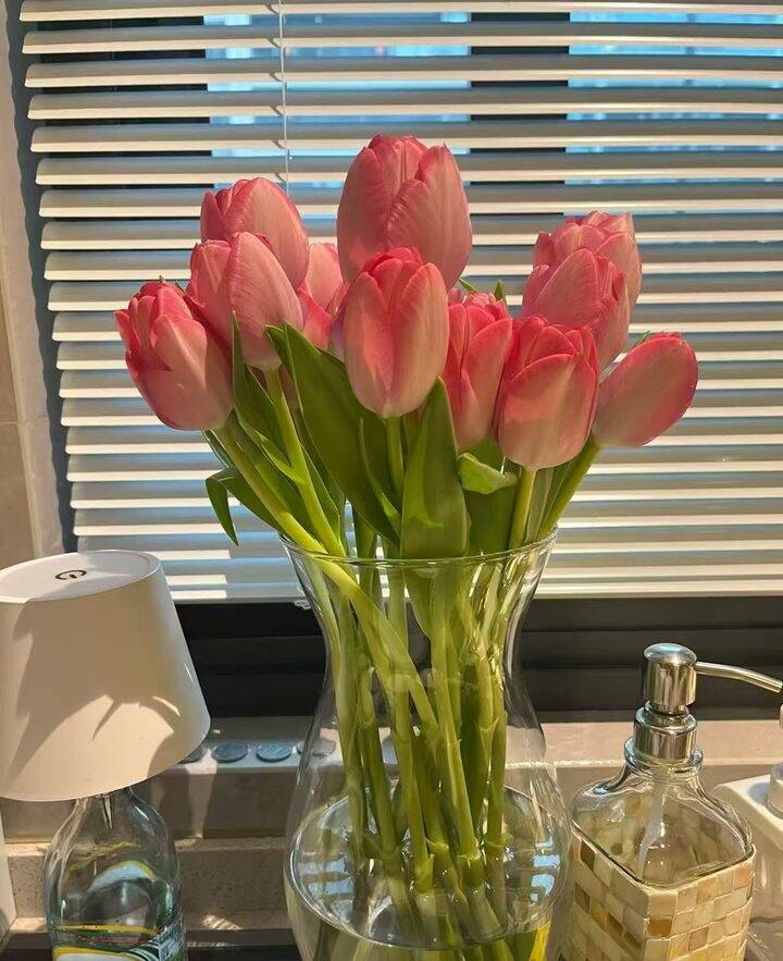 今天有郁金香了,之前买的很漂亮,能开挺久的,养了20多天呢,正好换新的