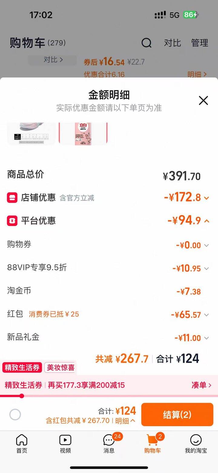 非88会员价格下方有其他面额的,可以按照购物车提示自行凑单