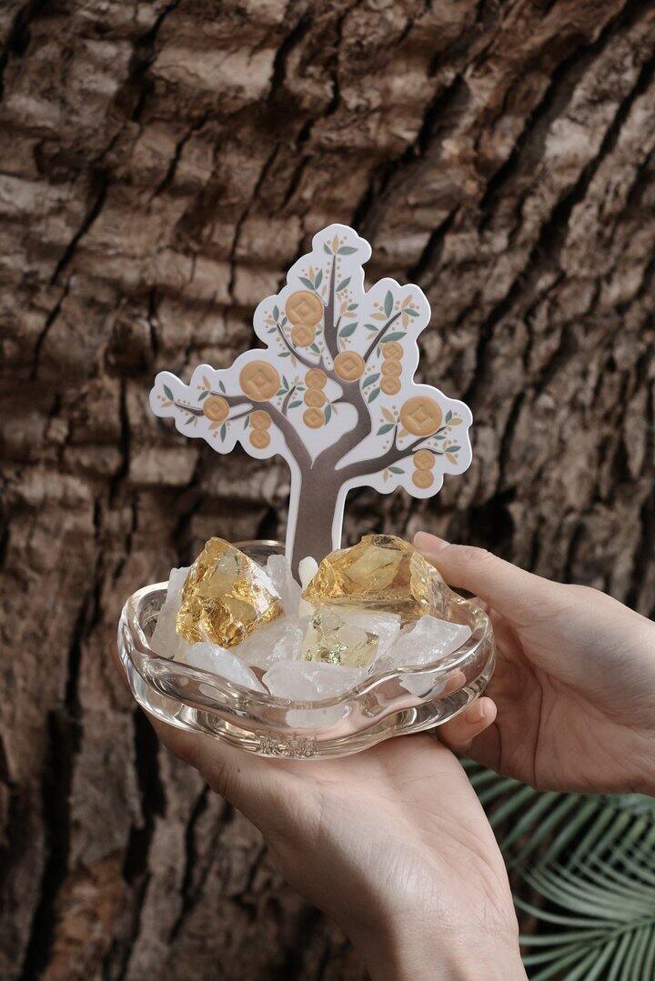 ☑️钱贯满堂发财树造型卡取自“财源广进、生生不息”的吉祥象征内含晶石——黄琉璃、白水晶黄琉璃:财富与好运,增进友谊、平静安宁白水晶:象征纯洁与永恒,带来心灵平和~