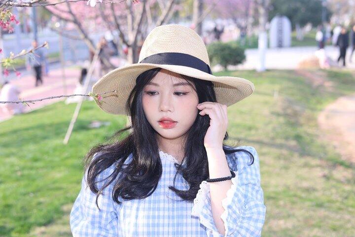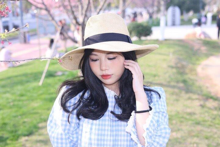 2️⃣许红豆同款去有风的地方^o^草色帽子特别适合春夏,防晒效果也是非常好的,帽檐不大不小立体有型,站在樱花树下微风拂过太有氛围感啦!