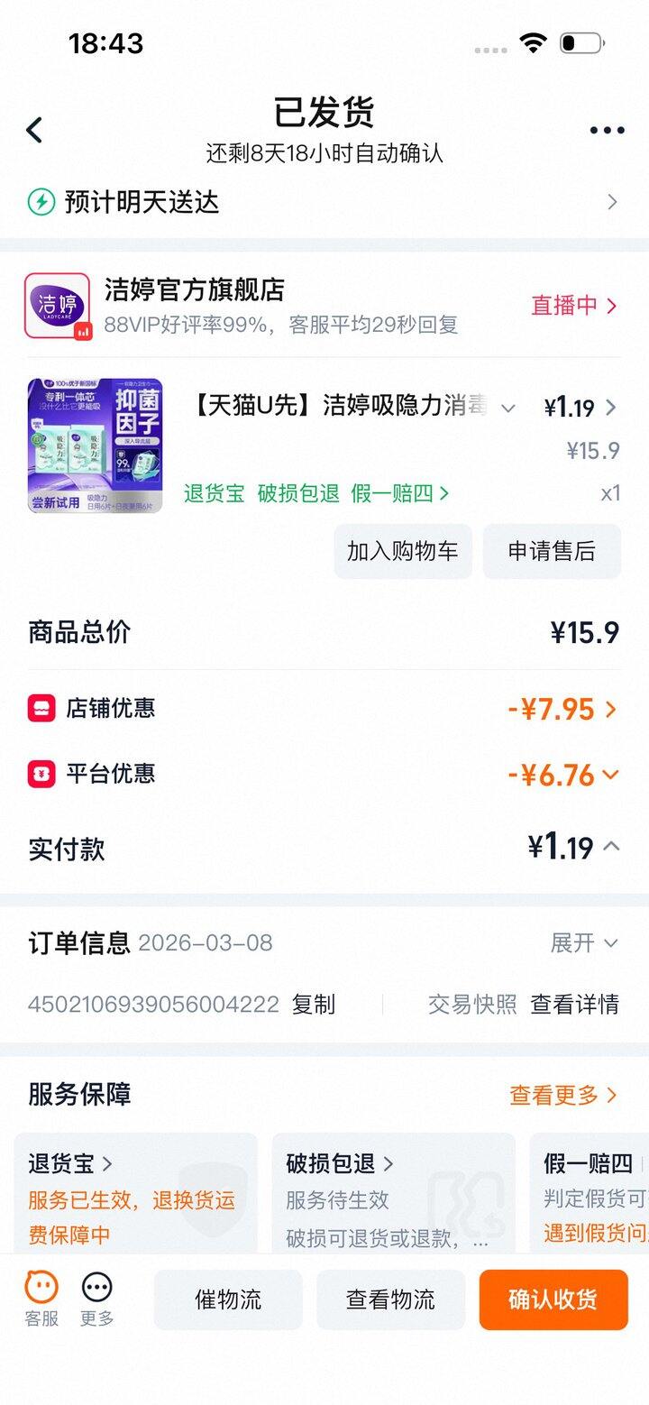 日用品省钱最好的方法倒不是说薅羊毛,而是对自己的物品尤其是类似卫生巾这种日常的,长期要用的东西库存心里有数。我自己比较省心的方法是统一放在一个地方,日用夜用护垫安全裤分区放好。这个月来月经就发现日用不多了,有羊毛就薅没有羊毛也没有活动就稍稍补够下一次的,再等机会,总之比临时去超市买肯定是便宜的多。也不要囤太多,现在电商天天各种活动,买太多也没地方放,没必要。