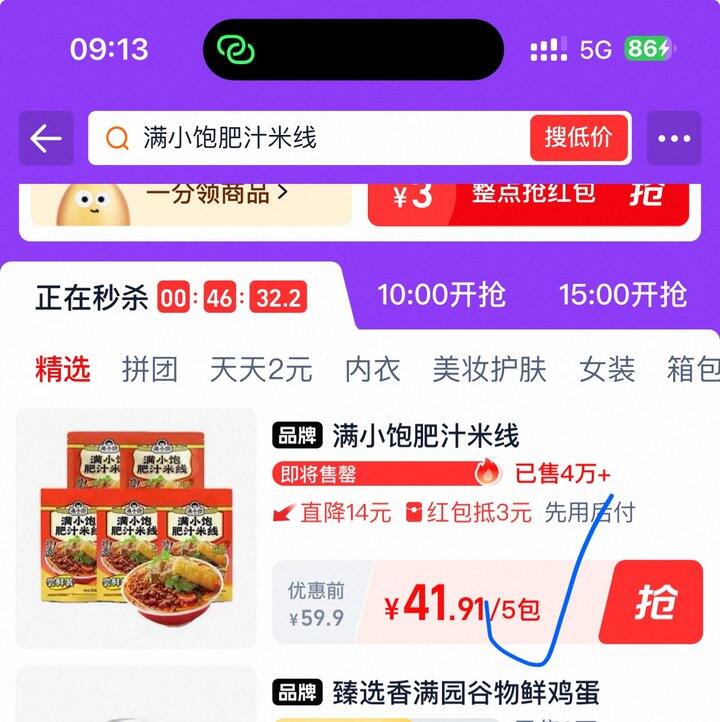 下拉详情页进入秒杀加购,拍下41.9