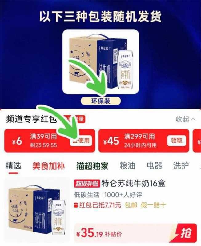 下拉进超补领39-6;35;返3虹包=32,折2/盒特仑苏纯牛奶250ml*16盒https://m.tb.cn/h.ieVFeRS